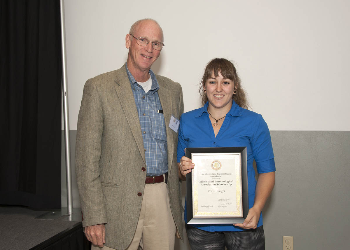 MEA Scholarship Blake Layton (left) presenting the award to Christi Jaeger (photo by Kat Lawrence) |