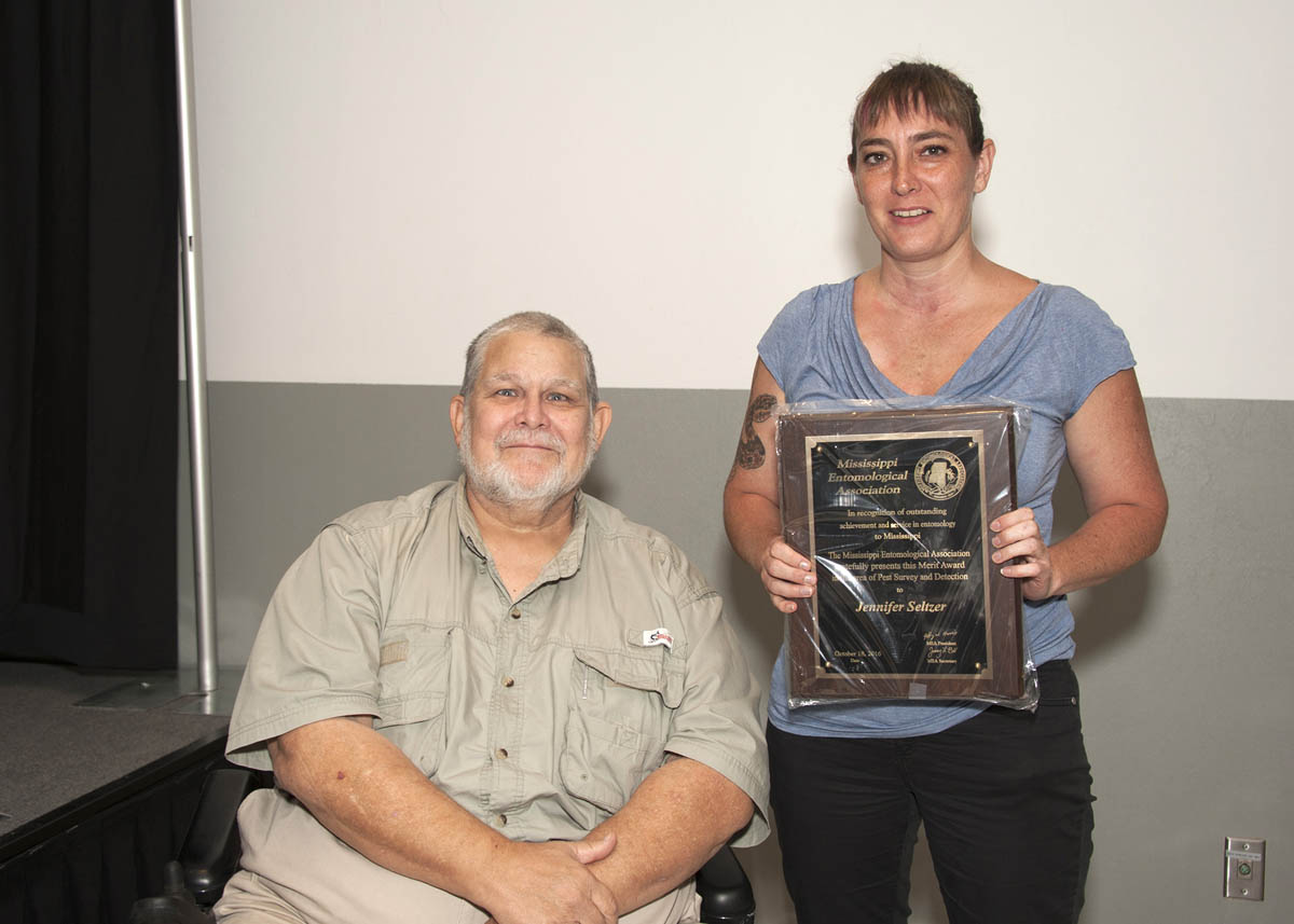 MEA Merit Award John Guyton (left) presenting award to Jennifer Seltzer (photo by Kat Lawrence) |