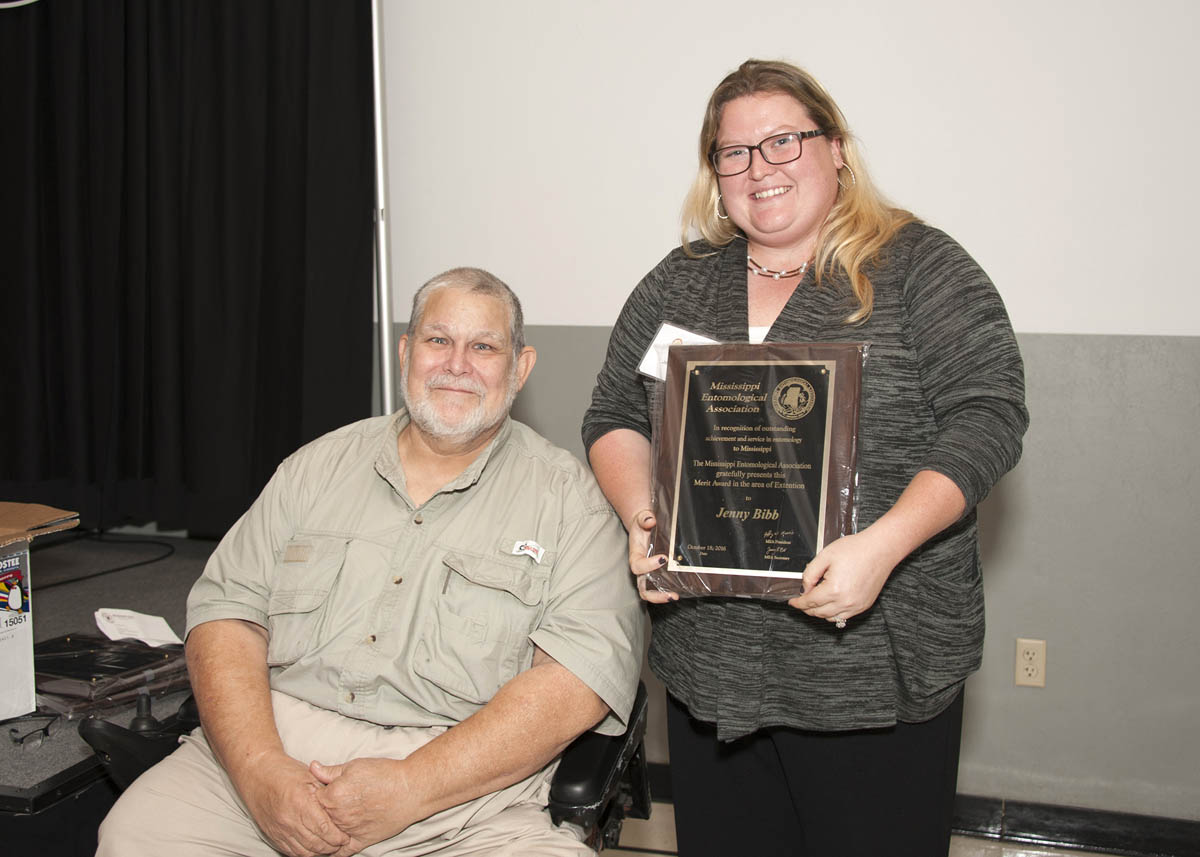 MEA Merit Award John Guyton (left) presenting award to Jenny Bibb (photo by Kat Lawrence) |