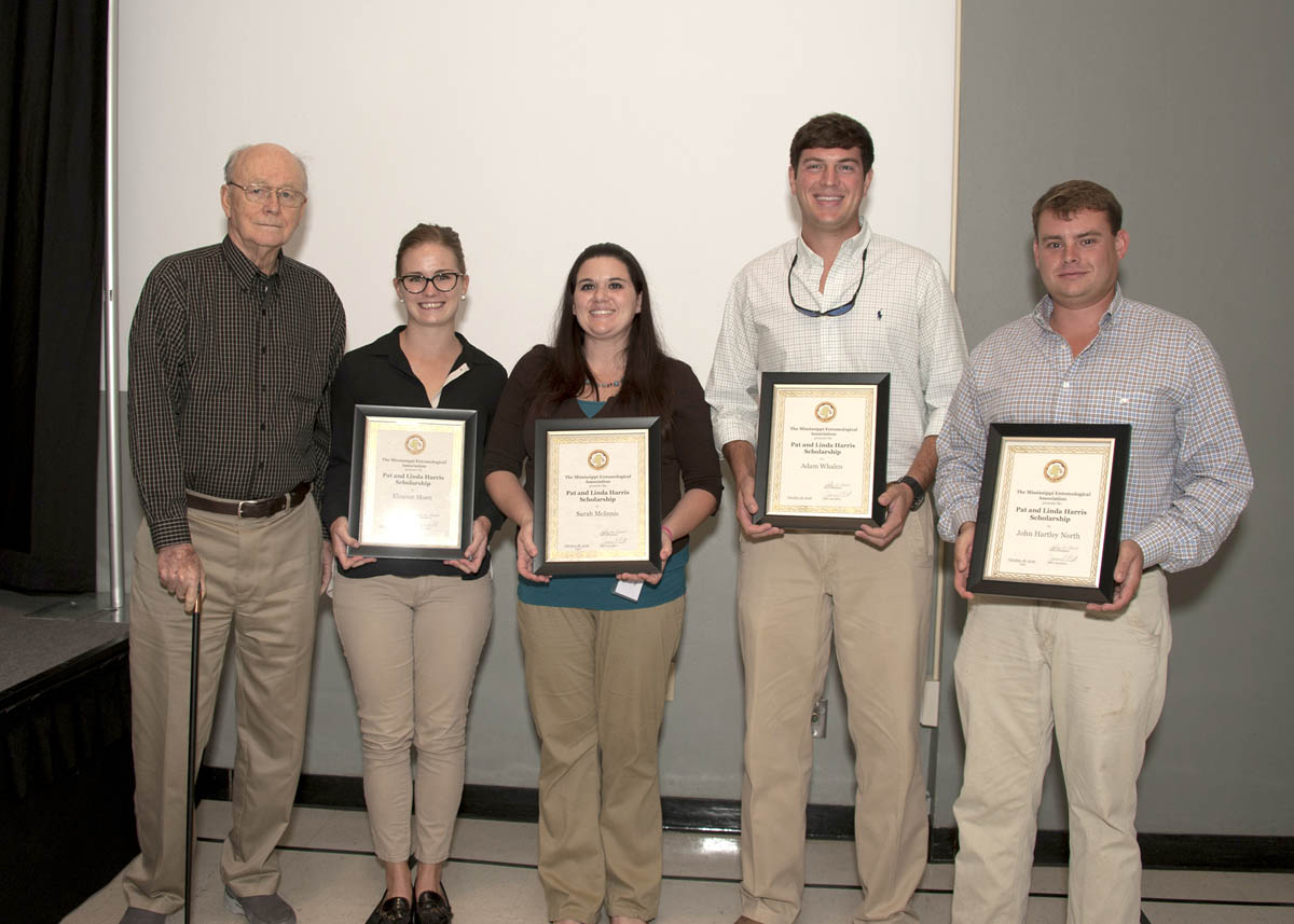 Pat and Linda Harris Scholarship From left: Pat Harris presenting awards to Ellie Moen, Sara McInnis, Adam Whalen, and John North. (Tina Nations not present for photo). (photo by Kat Lawrence) |