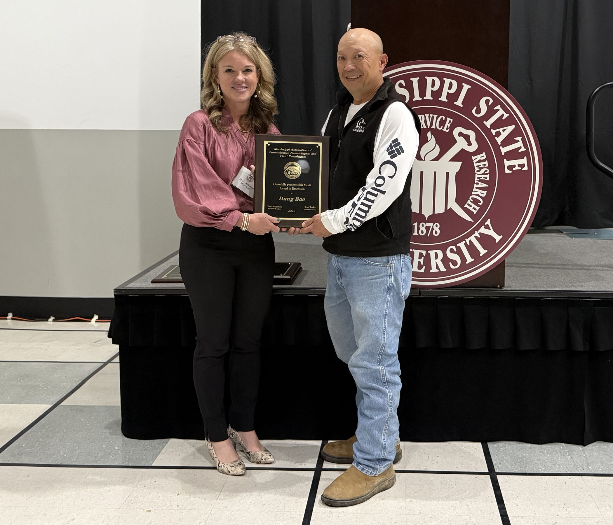 Dung Baol, recipient of the 2025 Merit Award for Extension presented by Tessie Wilkerson, MAENPP President |